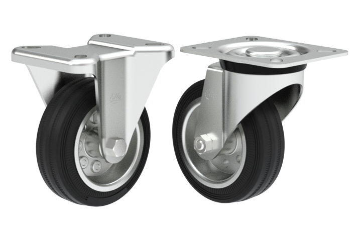 SL Castors Steel framed fixed and swivel castors with natural rubber wheels. Wheels available in ø80mm (3"), ø100mm (4") and ø125mm (5"). |